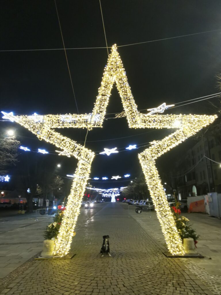 Per le festività di Natale, Davide mi ha inviato la foto di PIMPA sotto una luminaria “stellare” di Mirandola accompagnandola con questa nota: “L’unione Astronomica Internazionale vuole omaggiare PIMPA per il suo contributo nel recupero della meteorite Cavezzo”.