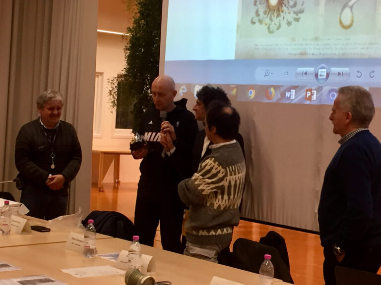 Con l’occasione, viene consegnata a Davide e PIMPA un trofeo che, ricordando il recupero dei 2 campioni della “CAVEZZO”, testimonia anche la gratitudine dell’INAF a Davide per la donazione dei campioni .